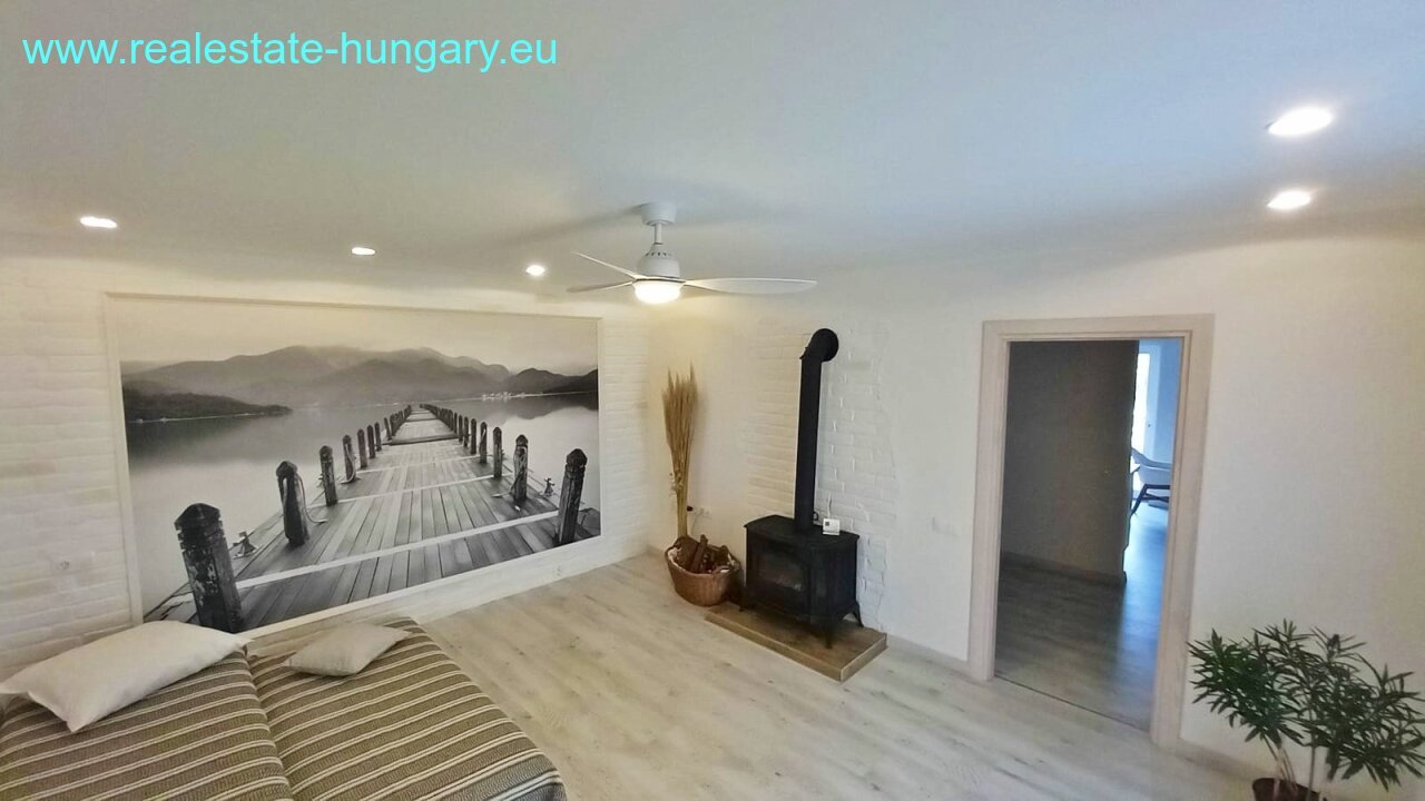 Im Jahr 2021/22 kernsanierter Bungalow mit geschmackvoller, gehobener Ausstattung: isolierverglaste Fenster mit Rollläden, Bodenbeläge: Fliesen und Laminat, Gaszentralheizung, zusätzlicher Kaminofen im Wohnzimmer, Schlafzimmer jeweils mit Duschbad, ein weiteres Wannenbad und eine moderne Küche inkl. aller Geräte. Hier ist eine weitere Terrasse mit Zugang in den Garten möglich. Separates Apartment mit Küche und Essbereich, Schlafzimmer und Duschbad. Gartengrundstück mit Wiese, Obstbäumen und altem Baumbestand. Ein ideales Domizil ebenso als Dauerwohnsitz wie auch als Ferienhaus nutzbar. Das Objekt in der weltbekannten Kurstadt Héviz mit Thermalsee ist als Erstbezug und mit Möblierung kurzfristig übergabebereit.