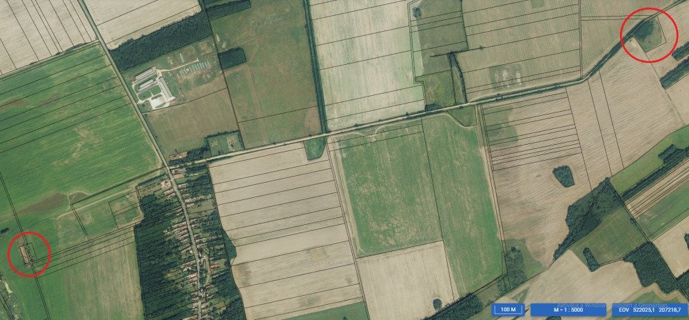 A farmtól 2,5 km-re keletre, a falutól közvetlenül keletre további 9523 m²-es földterület (HRSZ: 054/6) vásárolható.