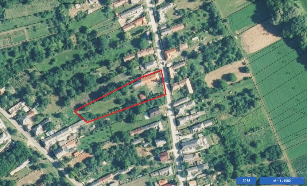 A telek teljesen bekerített, 2480 m²-es, 25 méter széles és 100 méter hosszú, parkosított és részben térkövezett.