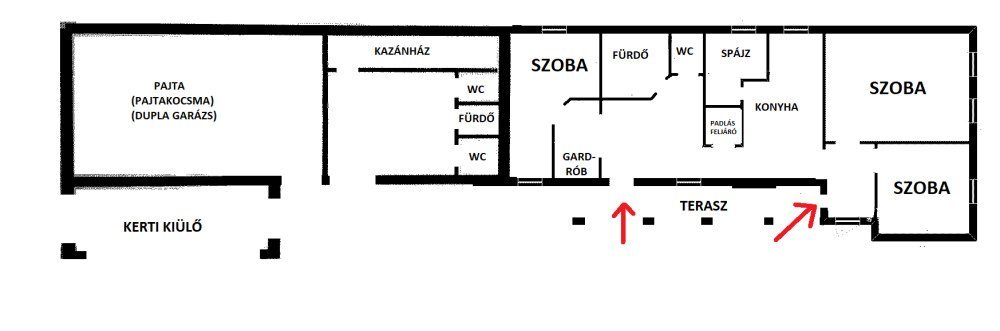 Lakóterület: 110 m² + 17 m² terasz + 60 m²-es pajta (dupla garázs) + 40 m²-es kerti ülősarok fatüzelésű kályhával.