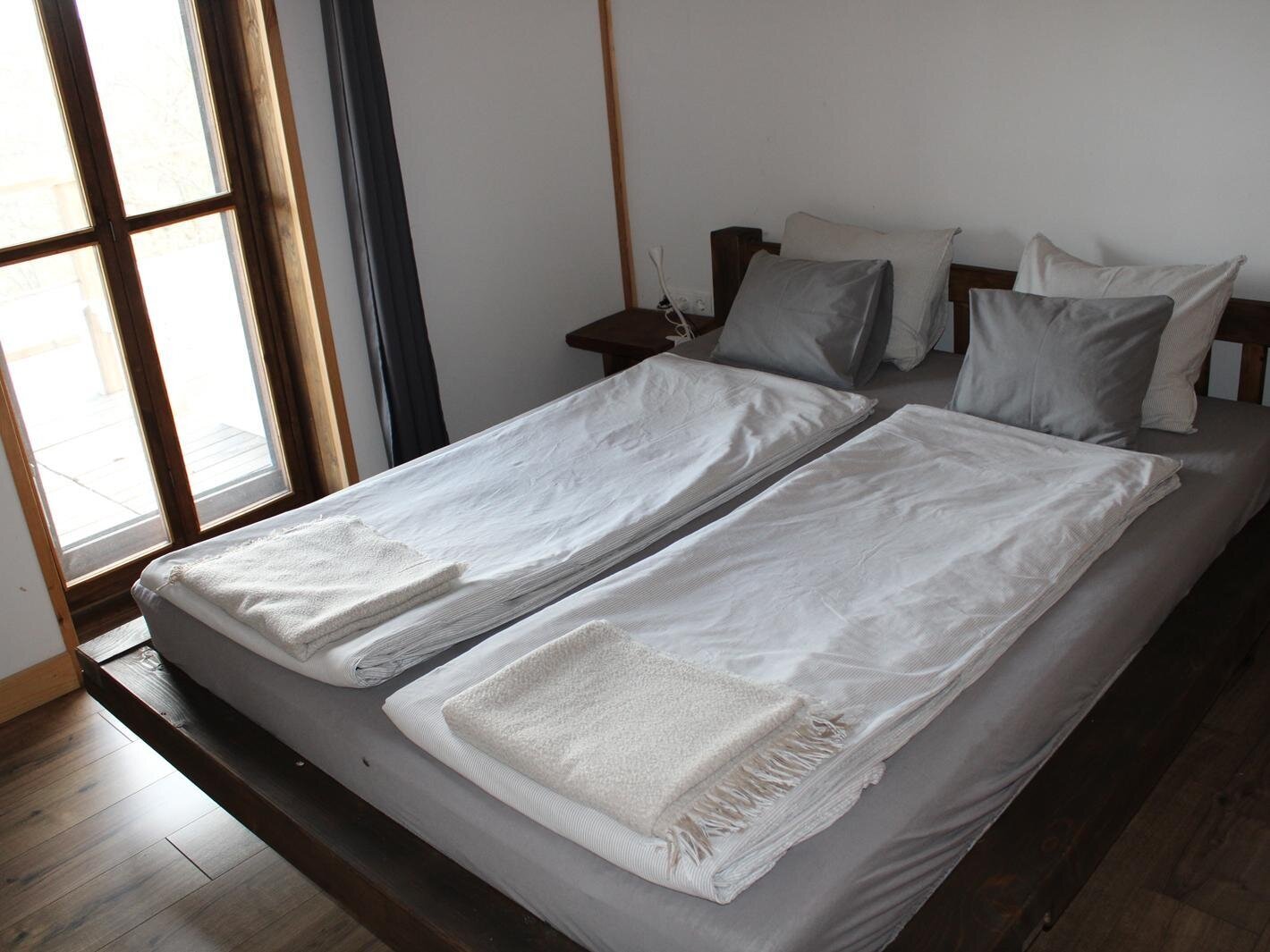 Im Obergeschoss liegt das Schlafzimmer mit einer Dachterrasse.