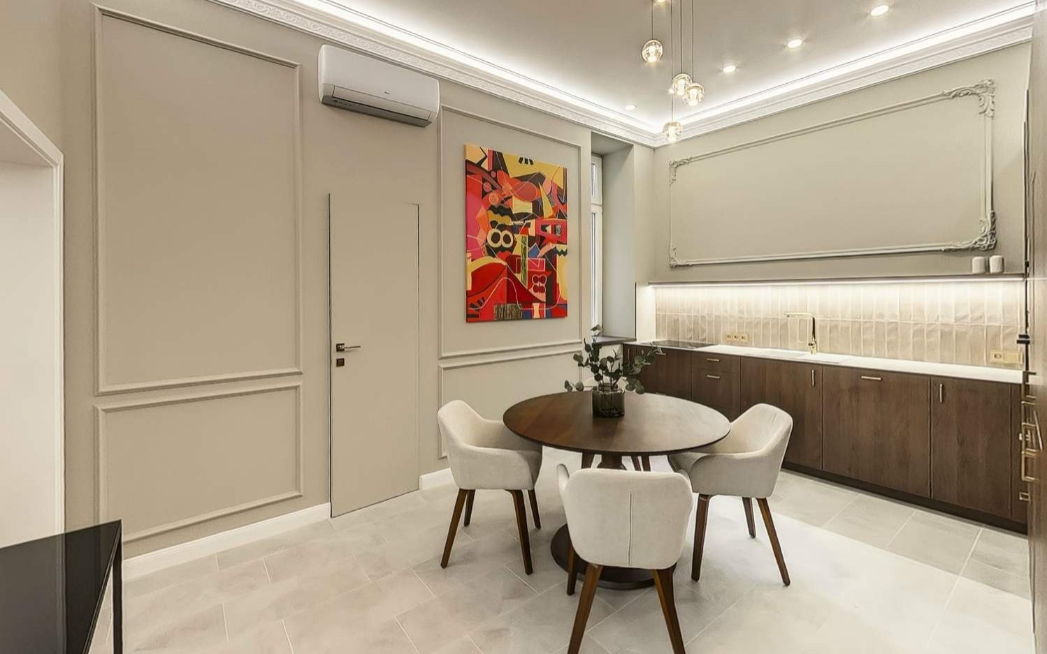 Az egész ingatlanban LED-es világítás található a díszlécek mögött, és minden szobában elegáns függeszték található.