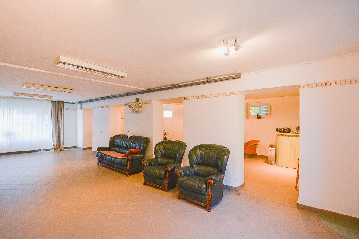 Raumaufteilung: EG. 220,0 qm: Wohnzimmer, Vorraum, Badezimmer, Speisekammer, Zimmer, Zimmer, Zimmer, Küche+Eßzimmer, Badezimmer+WC. Terrasse 60,0 qm. Souterrain 230,0 qm: Sauna-Raum, Werkstatt, Hobby-Raum, Hobby-Raum, Hobby-Raum, Toilette. Autoabstellplatz 50,0 qm.