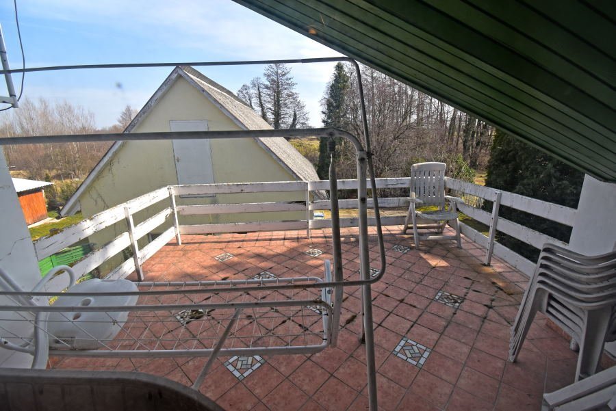 A házhoz tartozik egy 60m2-es épület 30m2-es garázzsal és egy 24m2-es műhellyel. Az épület tetőtere beépíthető.