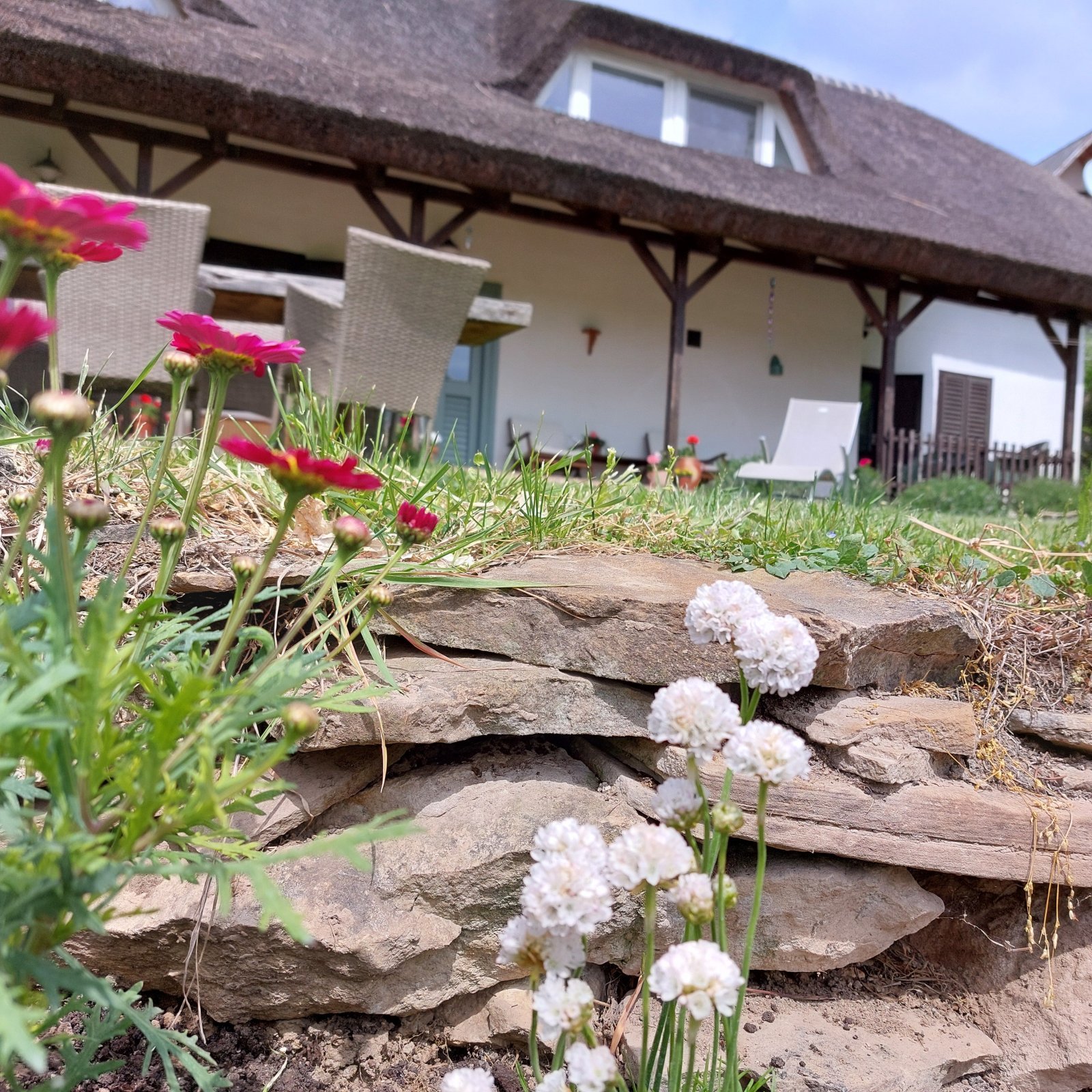 A nagyszerű nádtetős ház két szintes, így külön is lakható, vagy nagycsaládosok számára is elérhető. A helyiségek részletesen: