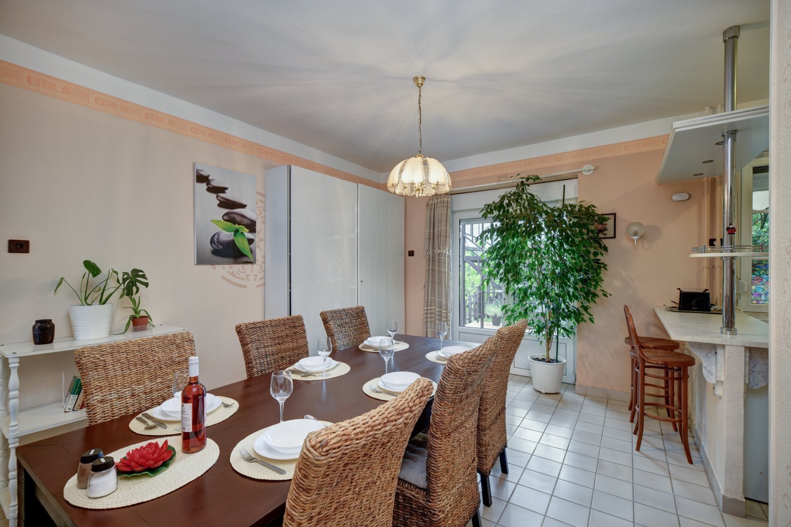 A hálószobákhoz erkély tartozik, az étkező pedig a hátsó teraszra nyílik, ahol egy kerti asztal hat székkel található. Grillezőhely, napozóterasz és parkolási lehetőség az udvarban található.