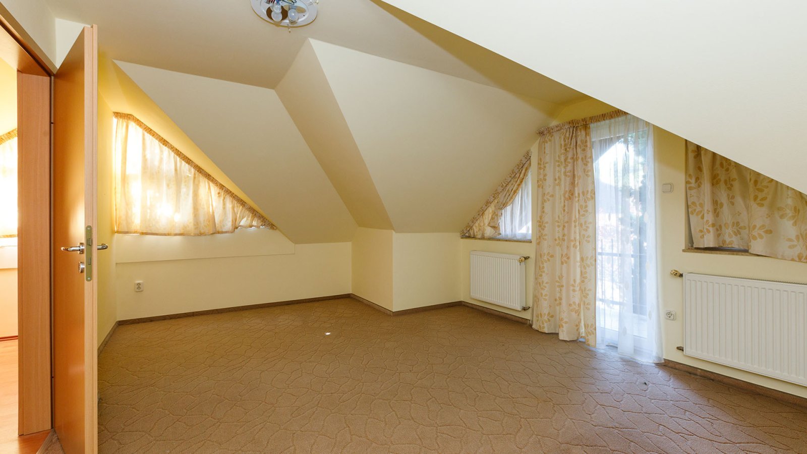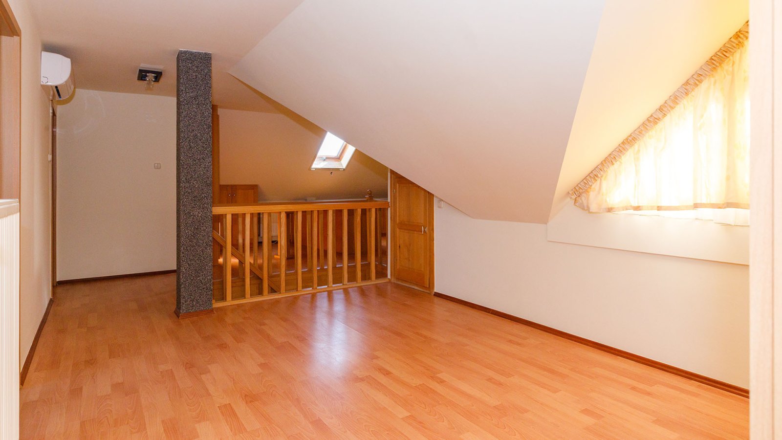 Tágas, több generáció együttélésére alkalmas családi ház, összesen 5 hálószobával, 2 nappalival és 3 fürdőszobával. A fűtést gáz, radiátorok és padlófűtés biztosítja. Három légkondicionáló egység (szintén a tetőtérben) biztosítja a hűtést és a fűtést is. Három WC található, melyek közül kettő külön helyiségben található. A száraz pince edzőteremként van kialakítva, és beltéri és kültéri bejárattal is rendelkezik. A dupla garázs két autó befogadására alkalmas. Két különálló tárolóhelyiség is rendelkezésre áll. Az udvaron két különálló, 3 x 3 méteres fa kerti fészer található.