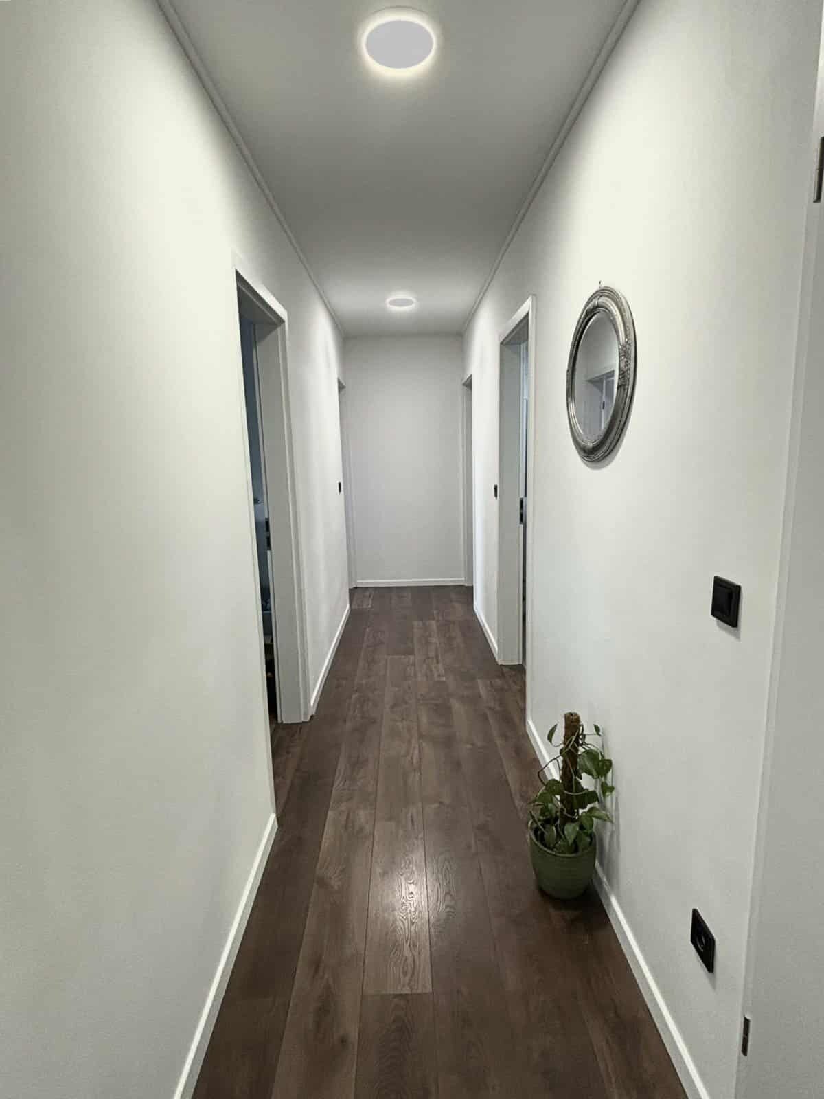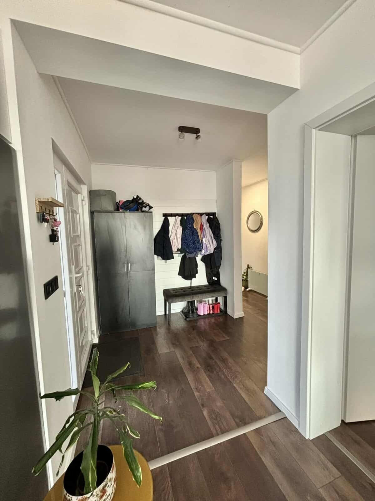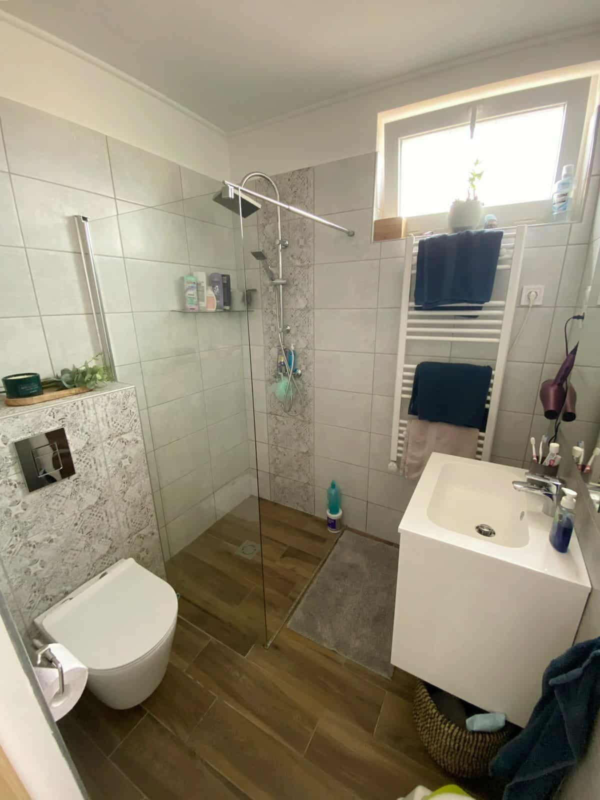 In Bad und WC gibt es Keramikfliesen, in den anderen Räumen hochwertiges Laminatparkett.