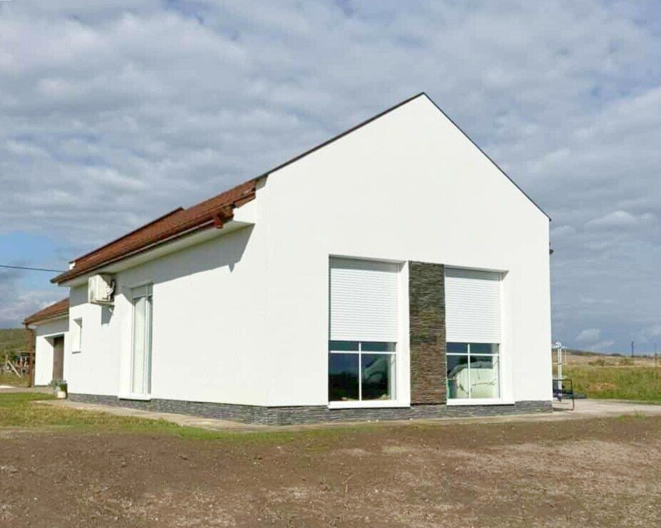 Das Gebäude wurde mit einer 15 cm Außendämmung und einer 30 cm Dachdämmung versehen. Die Bodenisolierung beträgt 15 cm. Die Kunststofffenster sind mit Jalousien und Moskitonetzen ausgestattet.