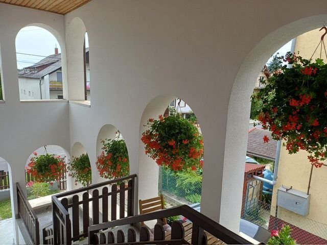 A hálószobákhoz erkély tartozik, az étkező pedig a hátsó teraszra nyílik, ahol egy kerti asztal hat székkel található. Grillezőhely, napozóterasz és parkolási lehetőség az udvarban található.