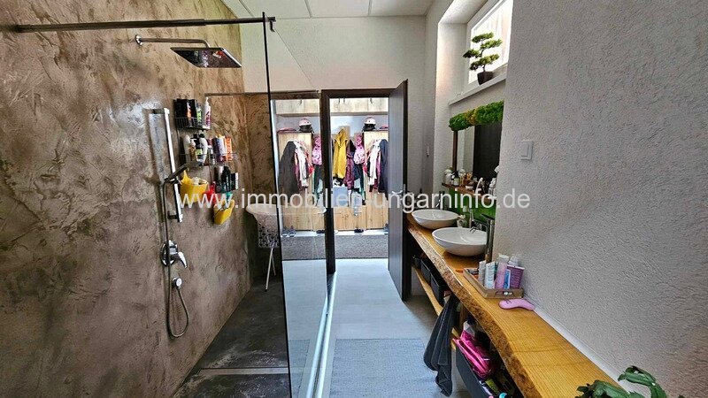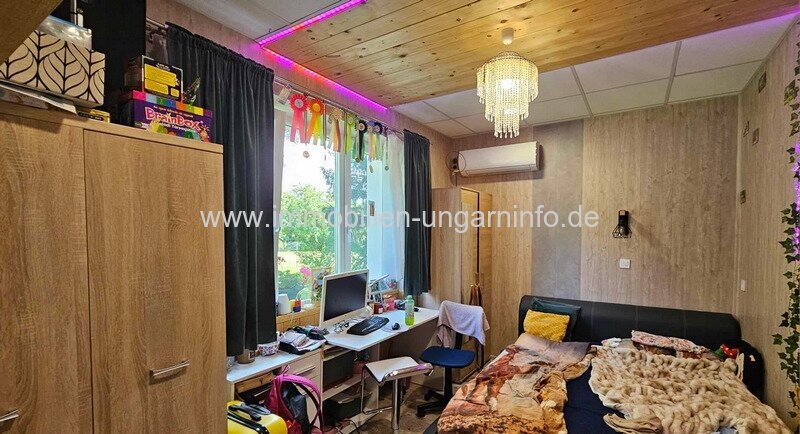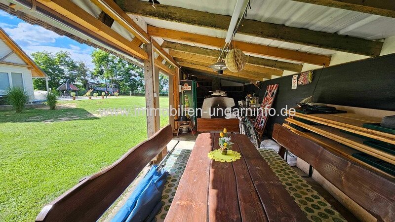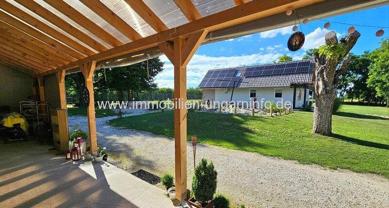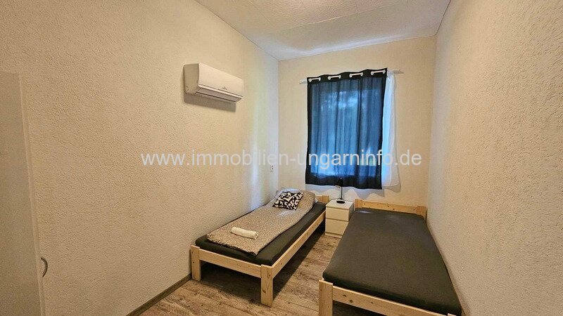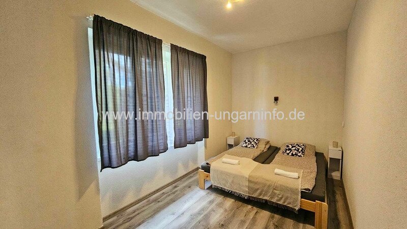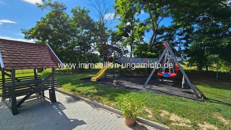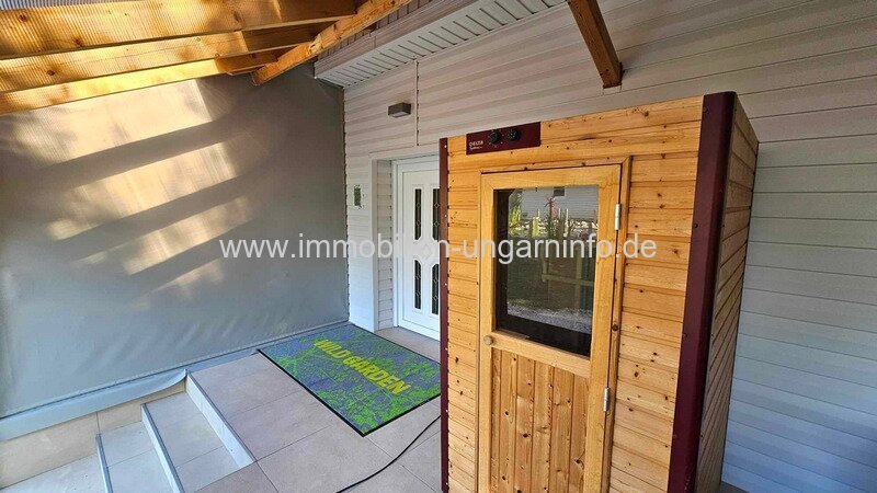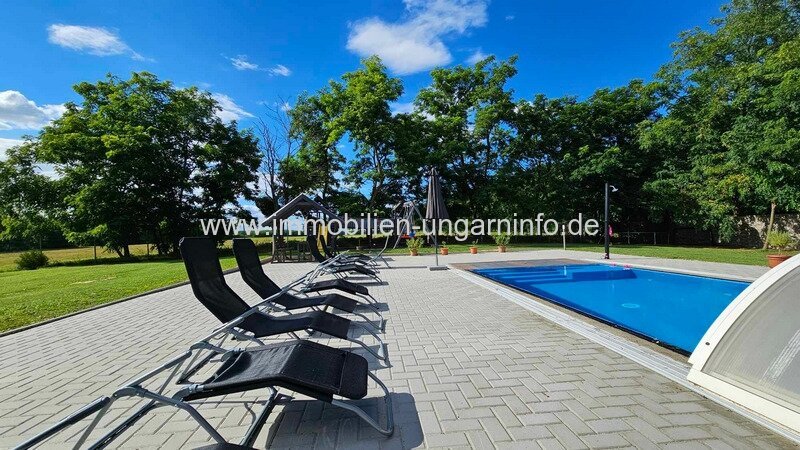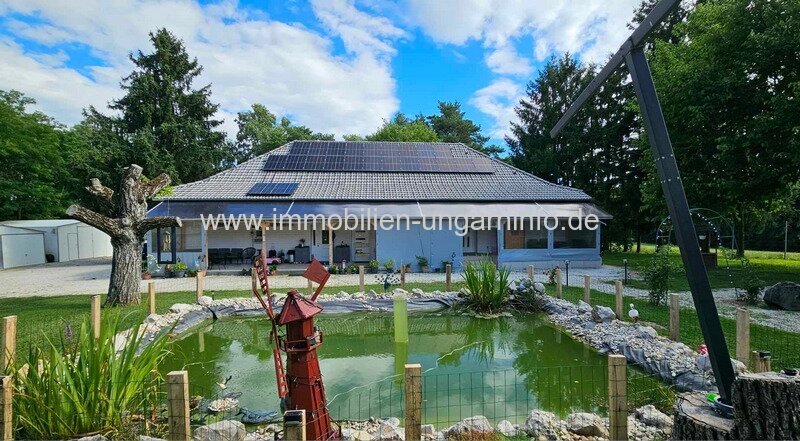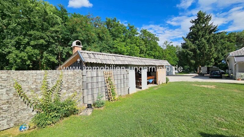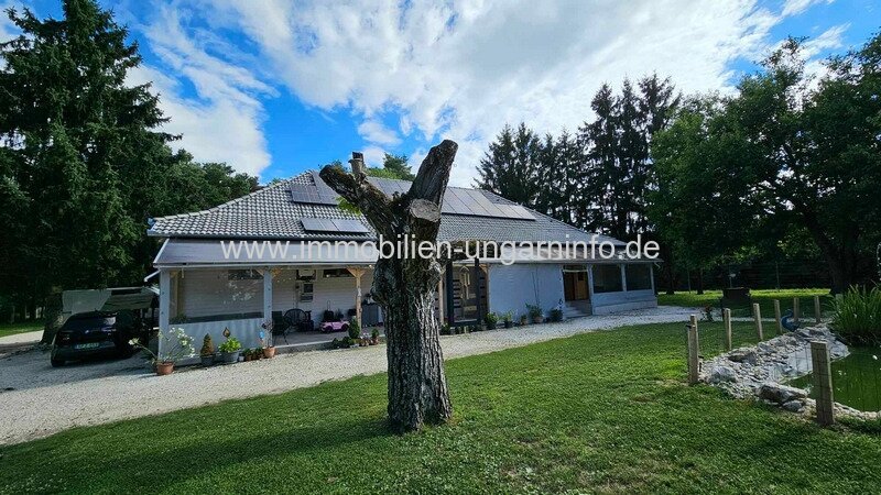 17 km vom Südufer des Plattensees entfernt biete ich ein Waldanwesen mit 3 separaten Appartements, 300 m² Wohnfläche, Außenschwimmbad, 5800 m² eingezäuntes Grundstück zum Verkauf an. Das Haupthaus wurde letztes Jahr komplett renoviert, mit zwei separaten Eingängen. Der erste Teil besteht aus einem Wohnzimmer mit amerikanischer Küche, Diele, 3 Schlafzimmern, begehbarem Kleiderschrank, Büro, Bad, WC, Waschküche und einer großen überdachten Terrasse. Der zweite Teil besteht aus: Wohnzimmer mit amerikanischer Küche, 2 Schlafzimmer, Bad, überdachte Terrasse. Das Gebäude hat ein Gäste-WC und einen Teilkeller. Das zweite Gebäude ist ein Neubau. Räume: überdachte geschlossene Terrasse, Diele, Wohnzimmer mit amerikanischer Küche, Schlafzimmer, Galerie, Badezimmer. Weitere Gebäude auf dem Grundstück: 64 m² Abstellraum, Grill, 3 kleine Abstellräume. Alle Appartements sind mit allem Komfort ausgestattet; der Stromanschluss beträgt 3*40 Ampere, plus 3*16 Ampere für den Vorzugstarif "H". Die Solaranlage ist neu installiert, 17 kW + 6 kW Leistung; damit ist die volle Energieeffizienz erreicht. Die Wasserversorgung erfolgt aus einem Brunnen mit Trinkwasserqualität, das Abwasser ist verrohrt. Gasanschluss innerhalb des Grundstücks. Die Heizung und Kühlung der Gebäude erfolgt über Wärmepumpen-Klimaanlagen. Im Hof befinden sich ein 6*3,5m großes, neu gebautes, beheiztes Hallenbad, eine Sauna und ein Jacuzzi. Zwischen den beiden Gebäuden ist ein Gartenteich angelegt worden.