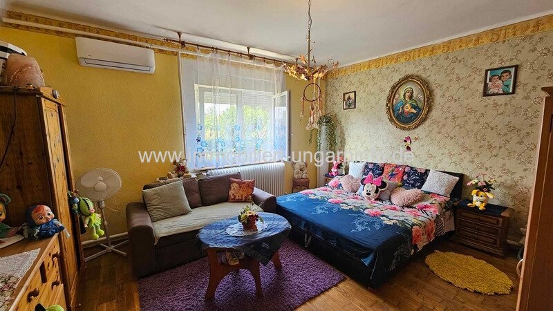 Im Komitat Somogy, in der Nähe des Plattensees, zu verkaufen ein Dorfhaus mit 150 m² Wohnfläche, Dachgeschoss, 2818 m² Grundstück. Das Backsteingebäude ist baulich, technisch und ästhetisch in gutem Zustand, mit neuen isolierten Außenfenstern. Erdgeschoss: 2 überdachte Terrassen, Wohnzimmer, 2 Schlafzimmer, Küche, Esszimmer, Speisekammer, Bad, Diele. Obergeschoss: Wohnzimmer, 2 Schlafzimmer, Balkon, Badezimmer.