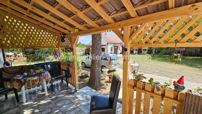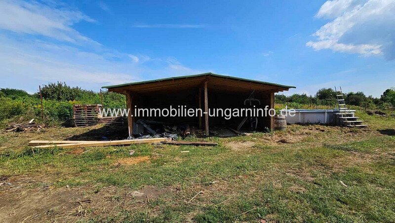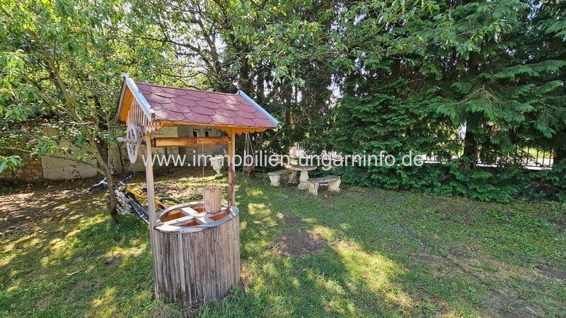 Das Gebäude ist in der Mitte des Grundstücks gebaut, so dass sich hinter dem Haus ein Obstbaumhain befindet. Im Hof gibt es einen Carport für 2 Autos, eine große Werkstatt, einen Bohrbrunnen und eine Pergola.