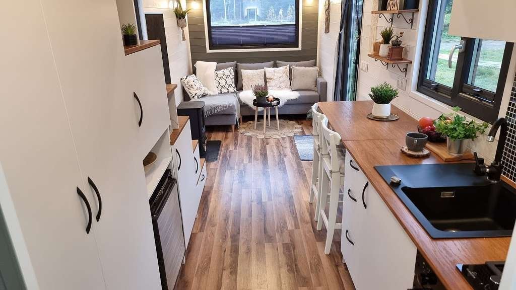 A Tiny House kiváló minőségű és jól felszerelt,.h.a gyártó prémium verziójában, plusz önellátó, d.h.hálózaton kívüli változatban.