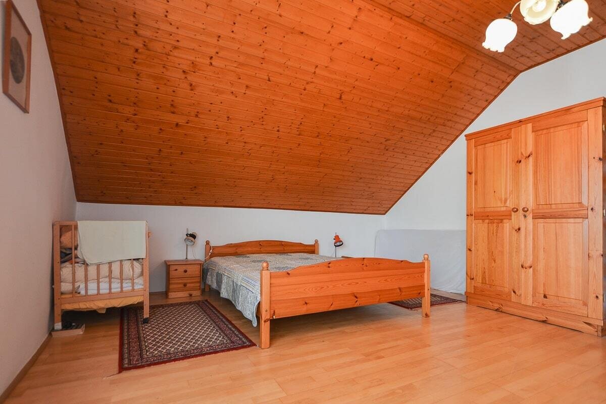 Dachgeschoß: Wohnzimmer 18,80 qm, Schlafzimmer 22,68 qm, Schlafzimmer 18,48 qm, Badezimmer + WC 4,00 qm, Küche + Essraum 9,15 qm, Balkon 5,00 qm.