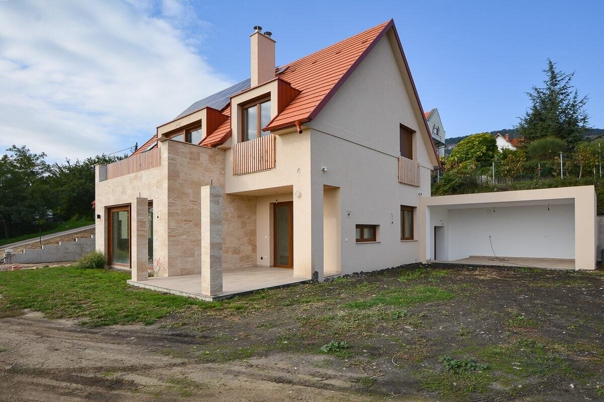 Neu aus Qualitätsmaterialien gebautes Einfamilienhaus still gelegen in Badacsonytomaj in wunderschöner Natur ist zu verkaufen. Das Haus ist südlich ausgerichtet, vom Erdgeschoß und vom Dachgeschoß eröffnet sich ein atemberaubender Panoramablick auf den Plattensee. Beide Wohnebenen verfügen über je einen separaten Eingang, so ist das Anwesen für zwei Generationen geeignet. Das Haus ist durch weitläufige, Licht erfüllte Räumlichkeiten geprägt. Das Gebäude wird mit Luft-Wärmepumpe erwärmt, Ausstattung ist von der Marke Daikin. Des Weiteren steht ein 10,5 kW Solarsystem als Unterstützung der Stromversorgung im Haus zur Verfügung. Der angegebene Kaufpreis versteht sich auf den Zustand in der jetzigen Bauphase. Das Haus ist ausgesprochen ideal für ständigen Wohnsitz, aber auch für Nutzung als Ferienhaus ist es ideal. Der Plattensee liegt 800 m entfernt. Es ist der Besichtigung wert! Es ist ein sehr schönes, großzügiges Anwesen.