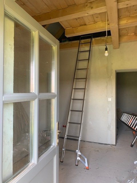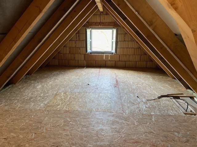Maga a ház 40 négyzetméter alapterületű. Két emelettel és terasszal közel 100 négyzetméter lakóteret kínál. A tetőterasz gerendái már a helyükön vannak. A ház teljes lakhatóvá tételéhez még vakolás, burkolás és festés van hátra.