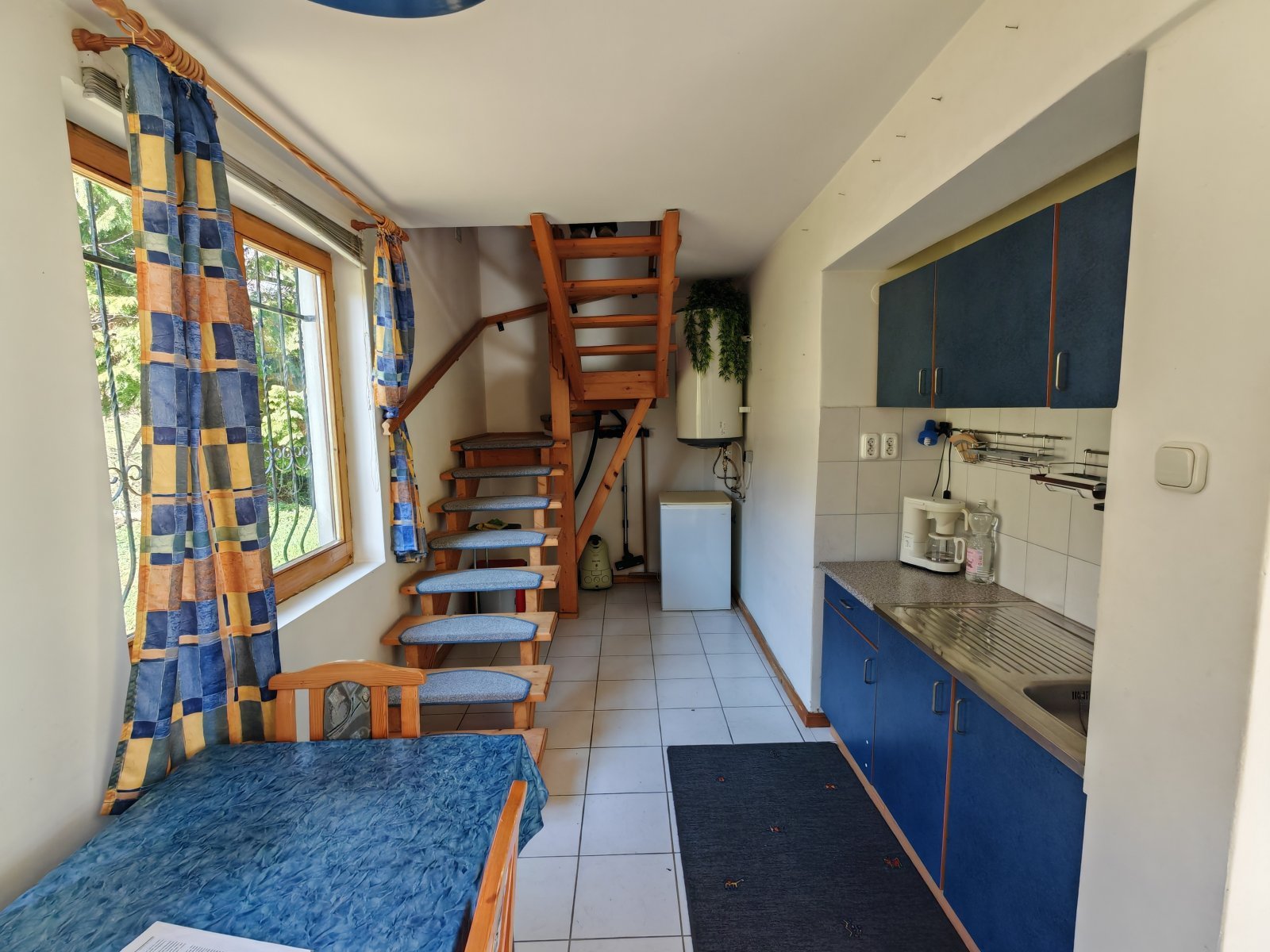 - a folyosótól balra található a konyha, étkező és az emeletre vezető lépcső
