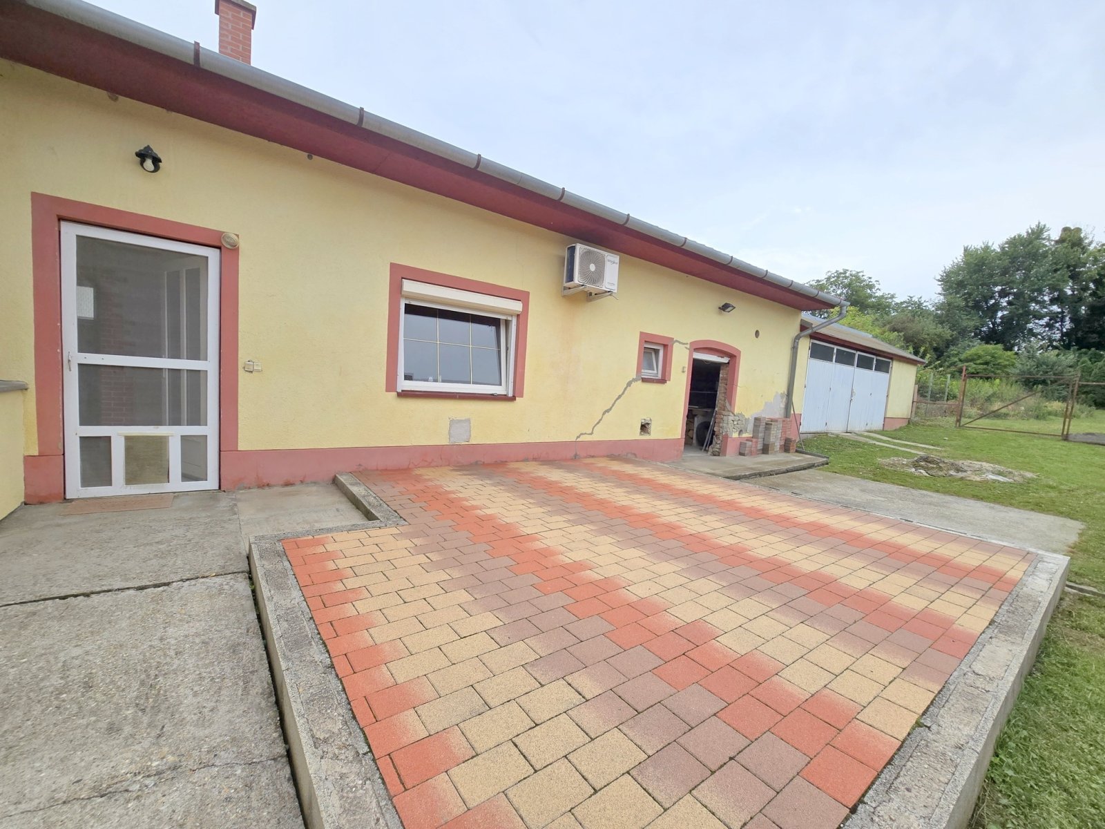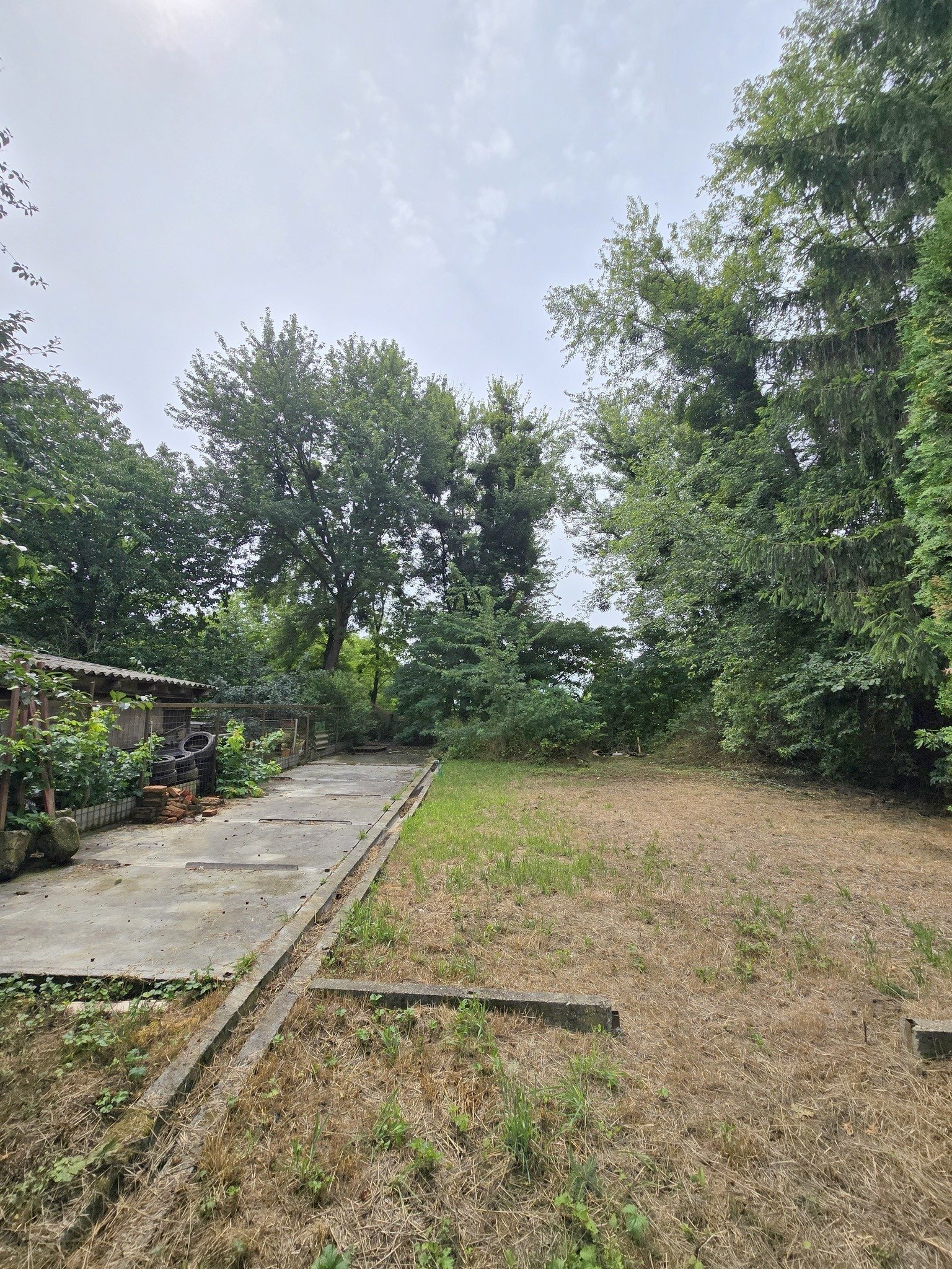 Az ingatlan végén öntött beton alap található (korábban kutyakennelként használták)