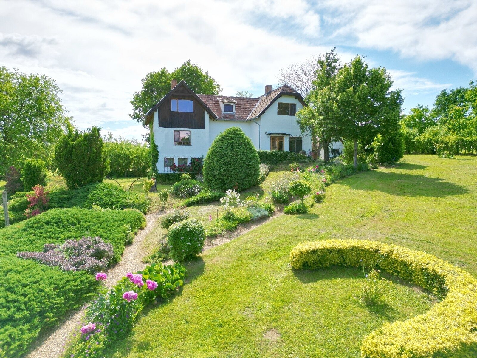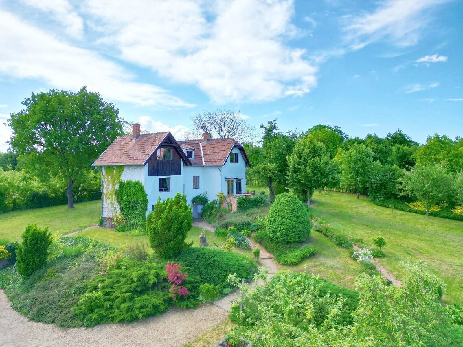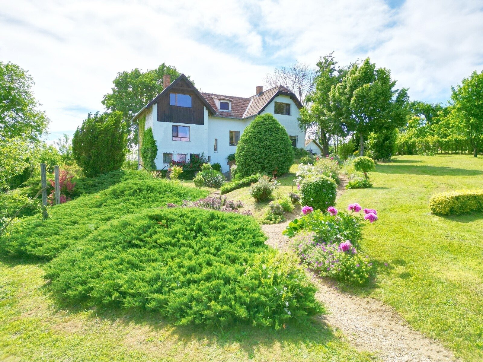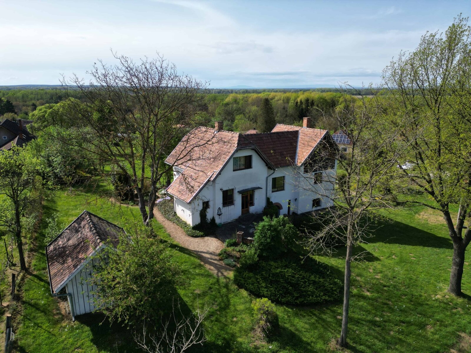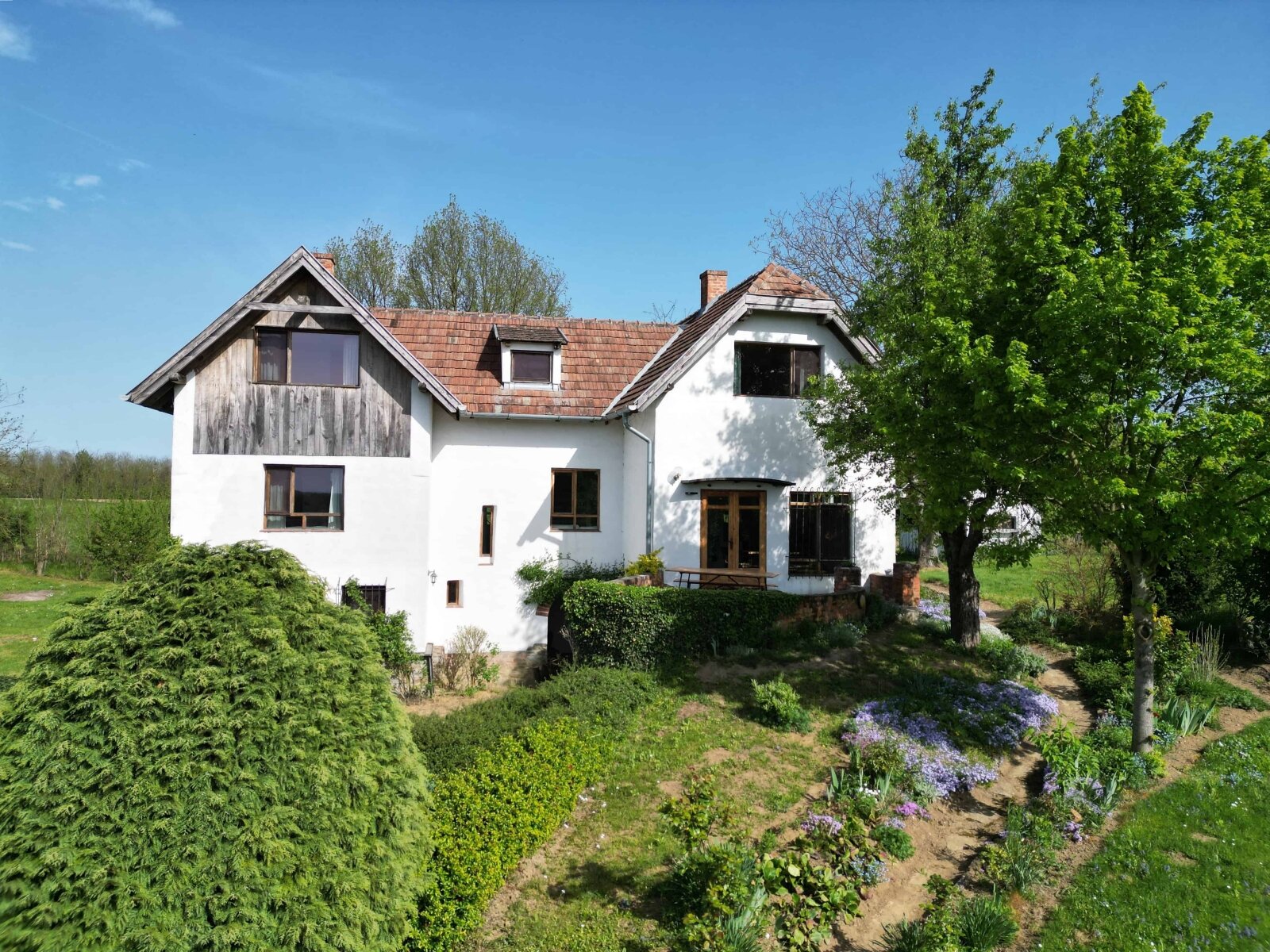 Das Wohngebäude besteht aus zwei verbundenen Einheiten. Die Gesamtwohnfläche beträgt hier 175 m2 bzw. das Grundstück großzügige 4 500 m2 umfasst.