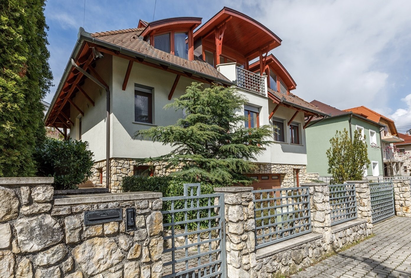 A házban riasztórendszer és kamerarendszer, valamint automata öntözőrendszer is található a kertben.