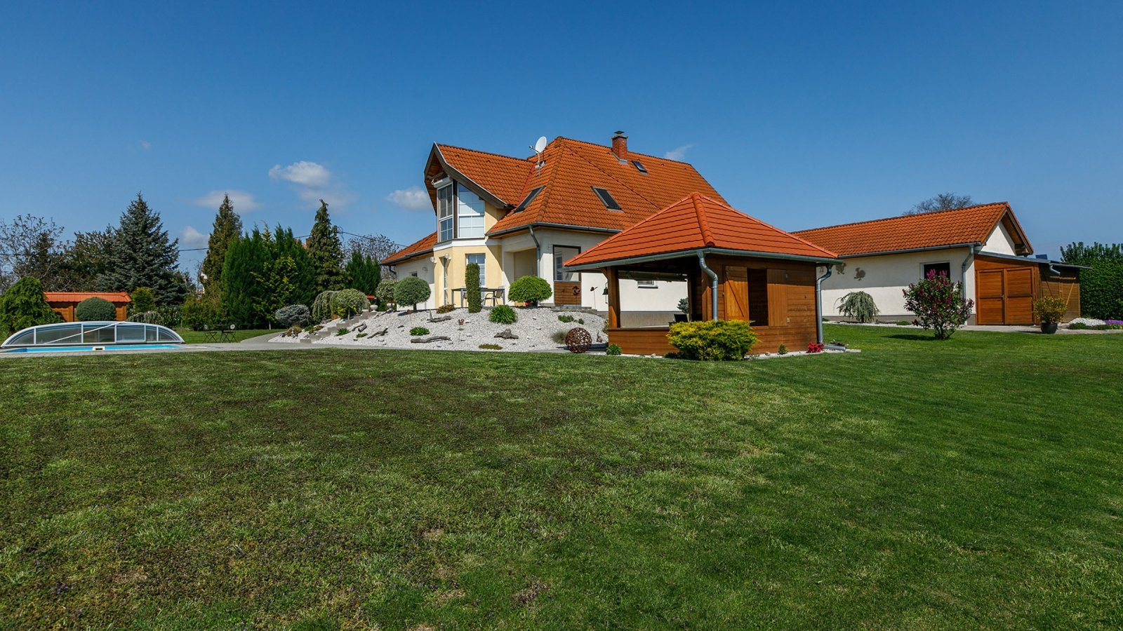 Műanyag ablakok, elektromos redőnyök, szúnyoghálók, műholdas TV és riasztórendszer gondoskodik a kényelemről.