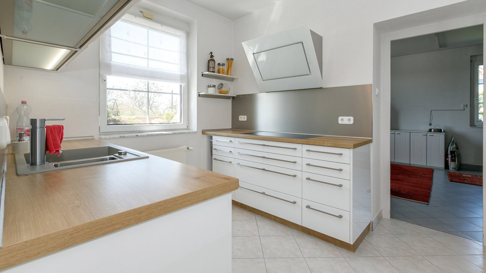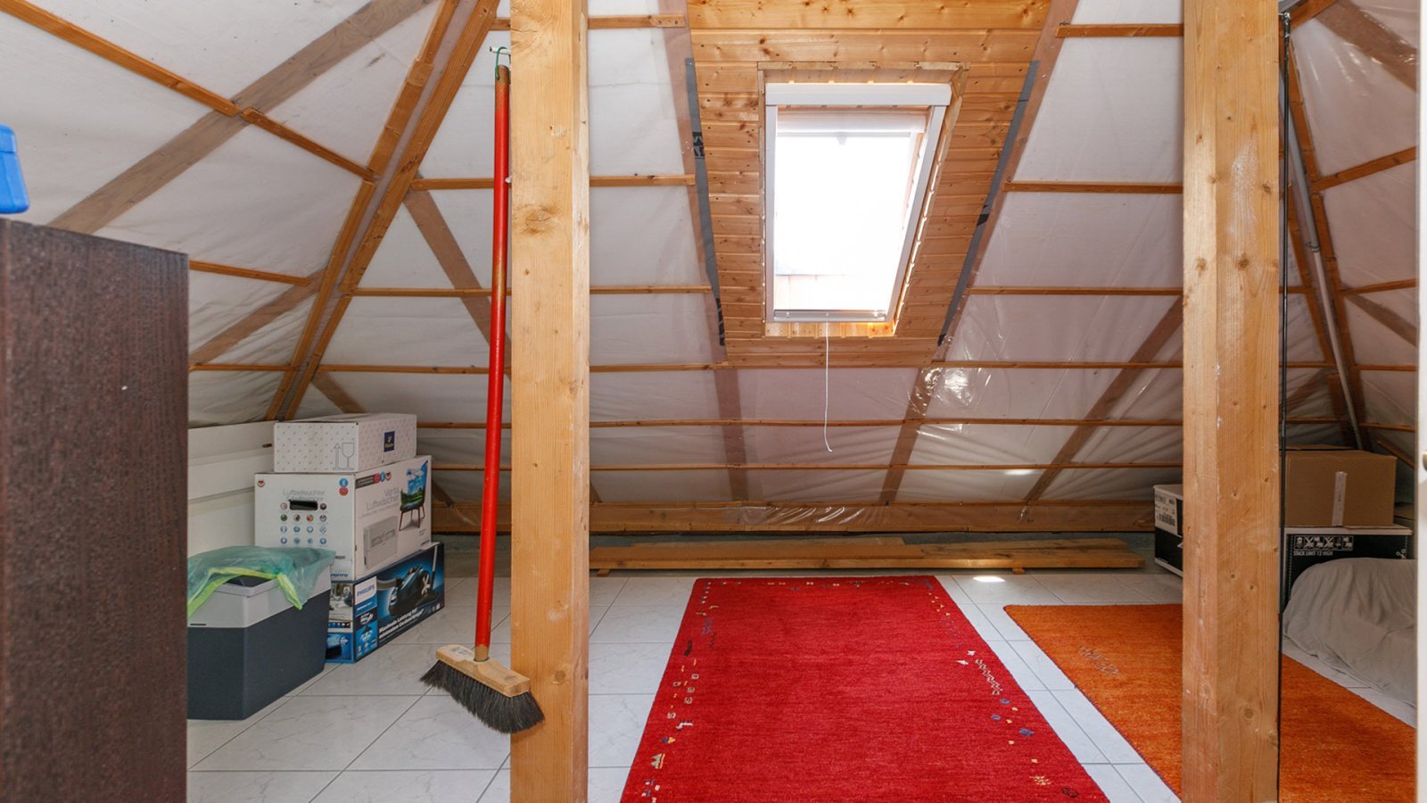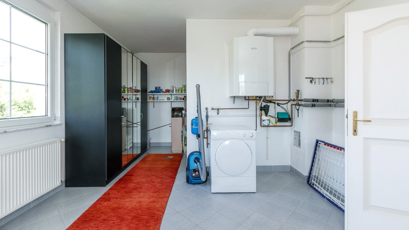 A házban egy nagy, fűtött, egyszintes garázs és egy tárolóhelyiség található a terasz mellett.