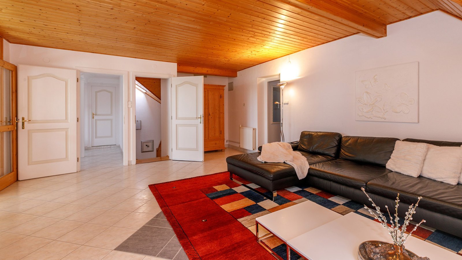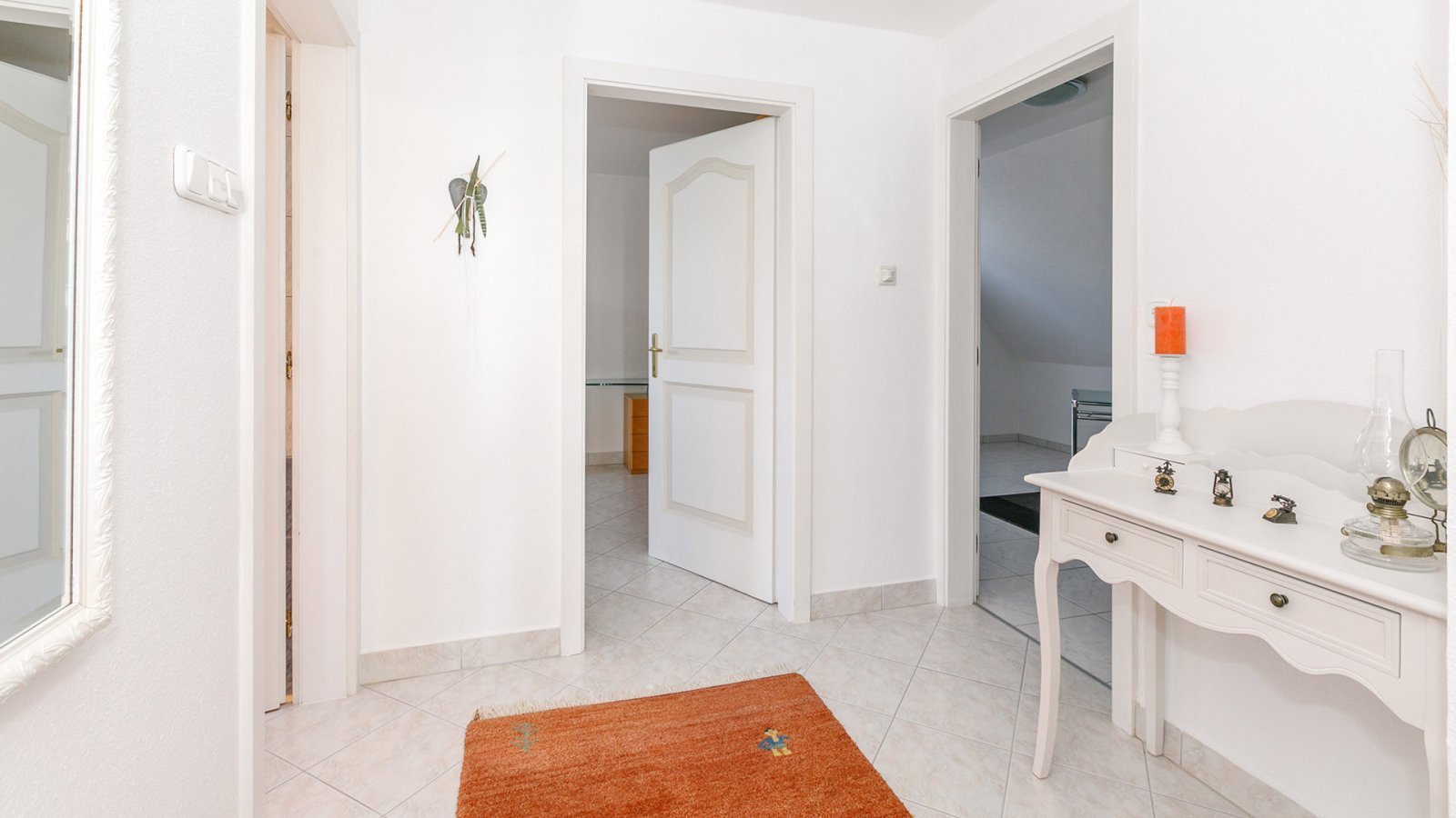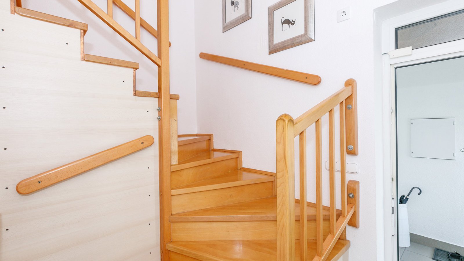 A földszinten tágas nappali, két hálószoba, egy fürdőszoba és egy konyha található, hozzá tartozó háztartási helyiséggel, valamint egy vendégmosdóval. Az első emelet a földszint tükörképe, egy nagy nappalival, két hálószobával, egy fürdőszobával, egy kis irodával és egy átalakított padlással.